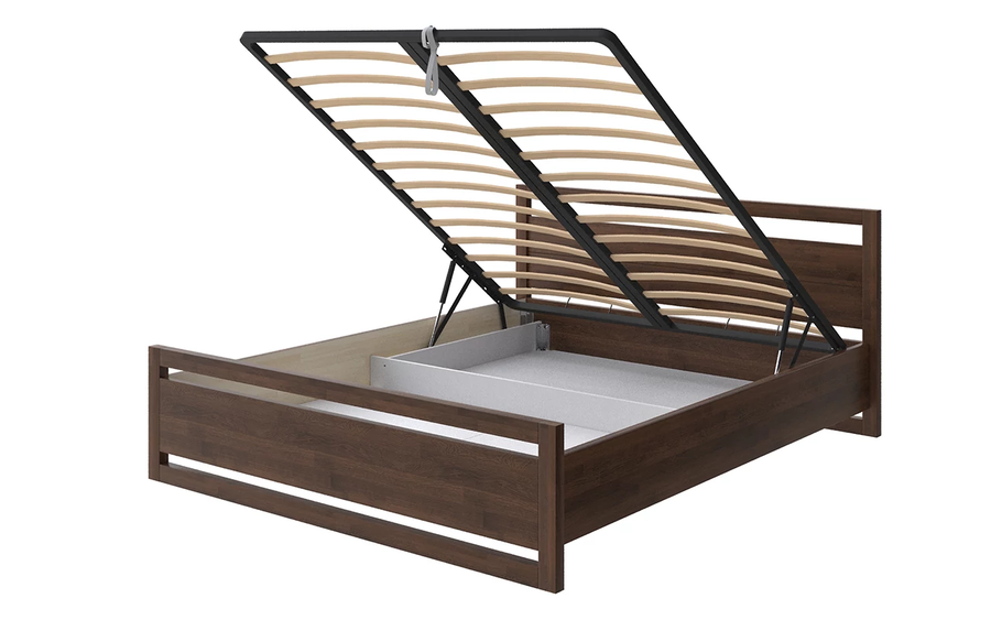 Кровать Kvebek с подъемным механизмом выполненна из массива дерева. Эта модель уравновешена и проста, четкие линии не перегружают интерьер и подходят для оформления комнат как в минималистичном, так и ярком стиле.