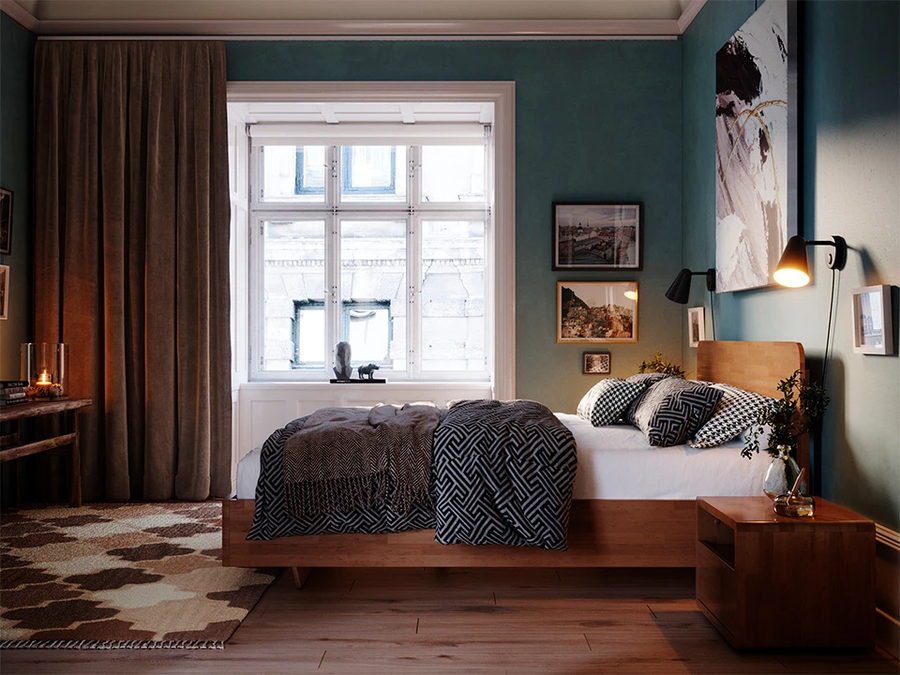 • Парящий царговый пояс визуально увеличивает пространство спальни, добавляет «воздуха» в интерьере.